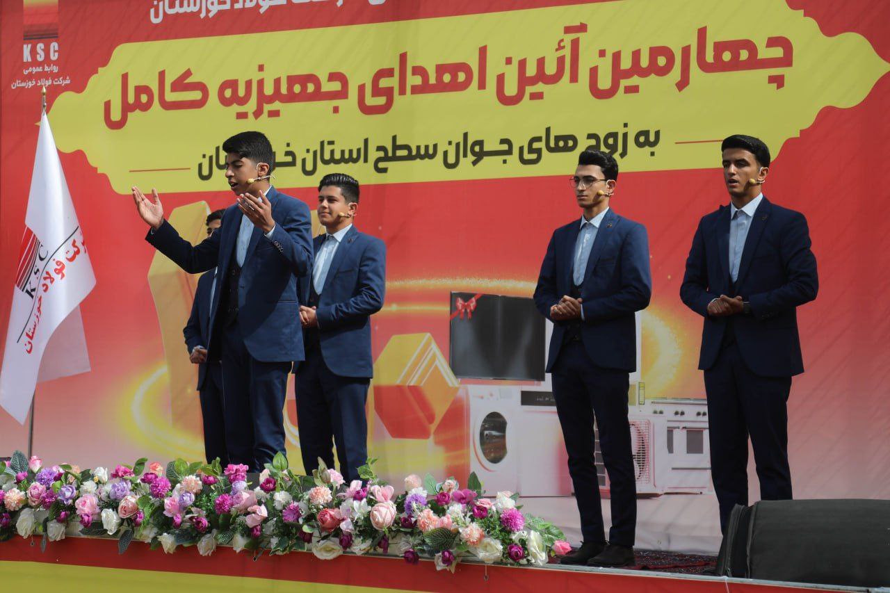 چهارمین آیین اهدای جهیزیه به زوج های جوان سطح استان خوزستان با حضور امام جمعه اهواز، فرمانده سپاه حضرت ولیعصر(عج) خوزستان، معاون سیاسی استاندار، مدیر عامل شرکت فولاد و جمعی از مسوولان برگزار شد.